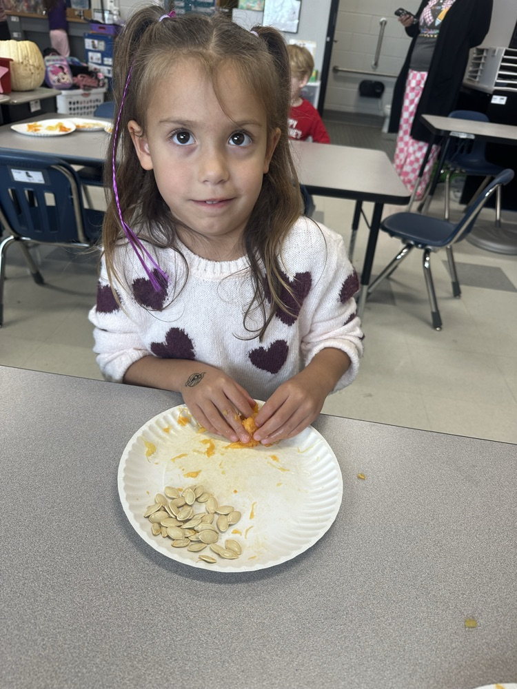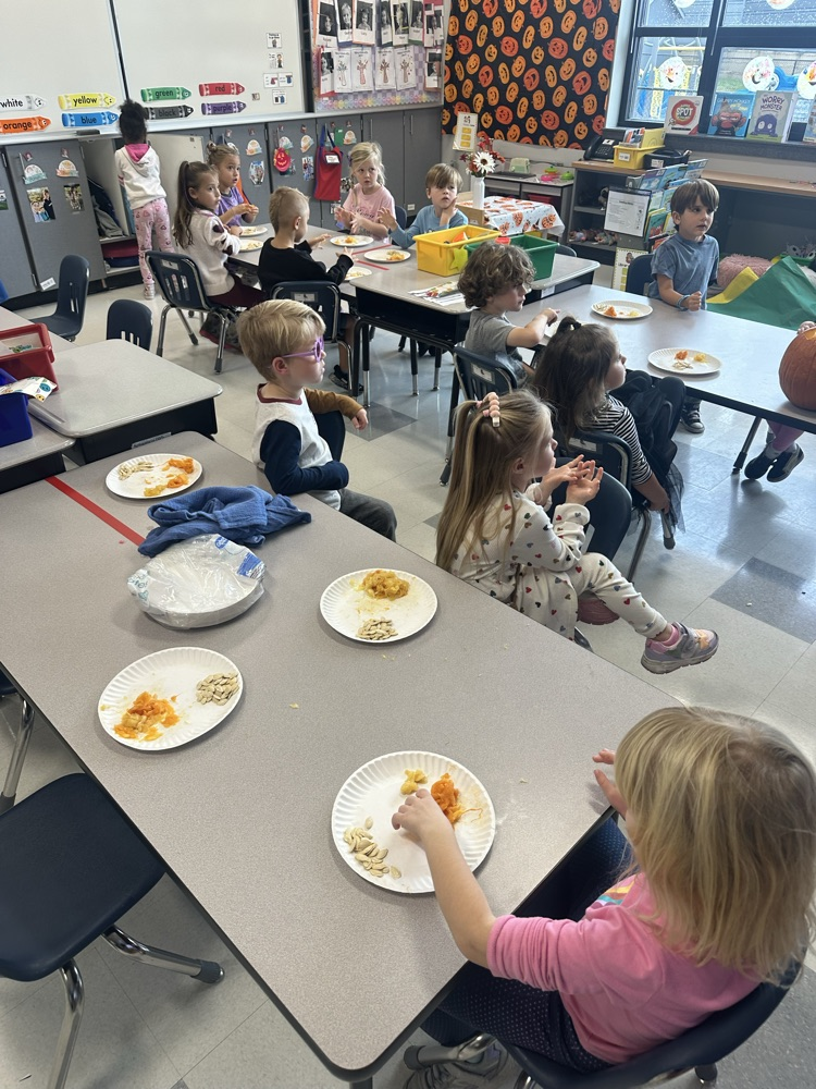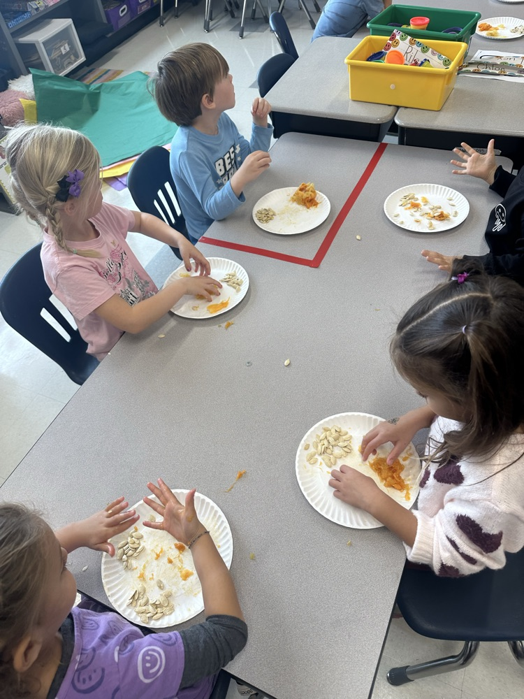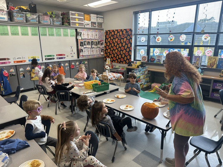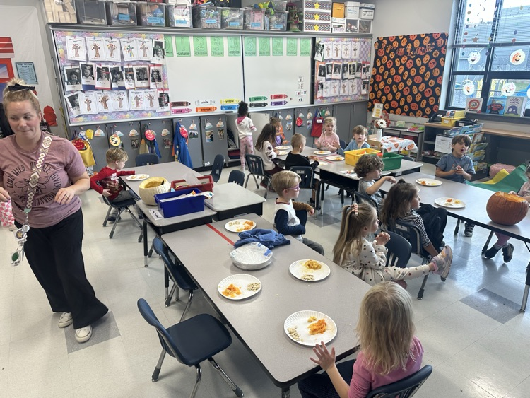 Mrs. Kolasa, Mrs. Nilo, and Mrs. O’Hara’s class had some pumpkin fun today! They used their 5 senses, sorted, and counted! 🎃